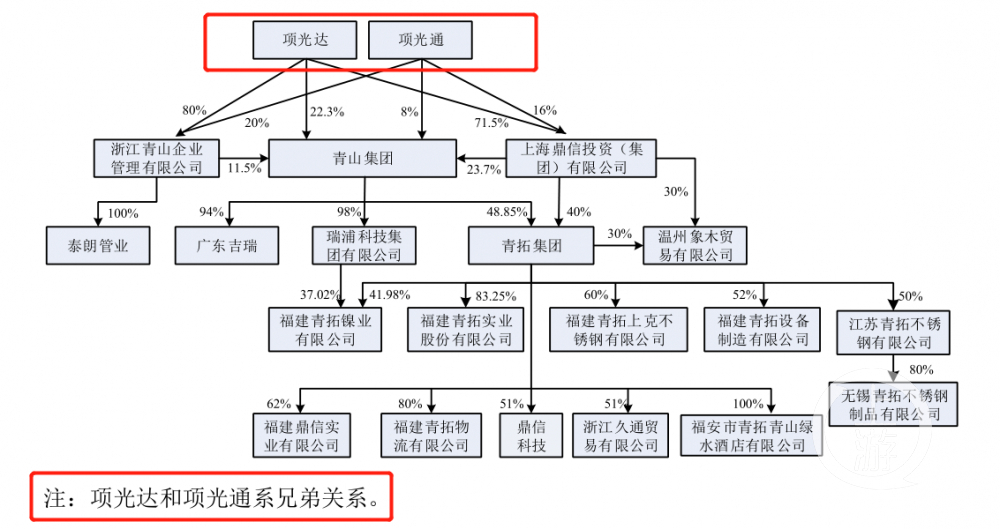 青山集团股权控制关系(图片来源:甬金股份招股书)