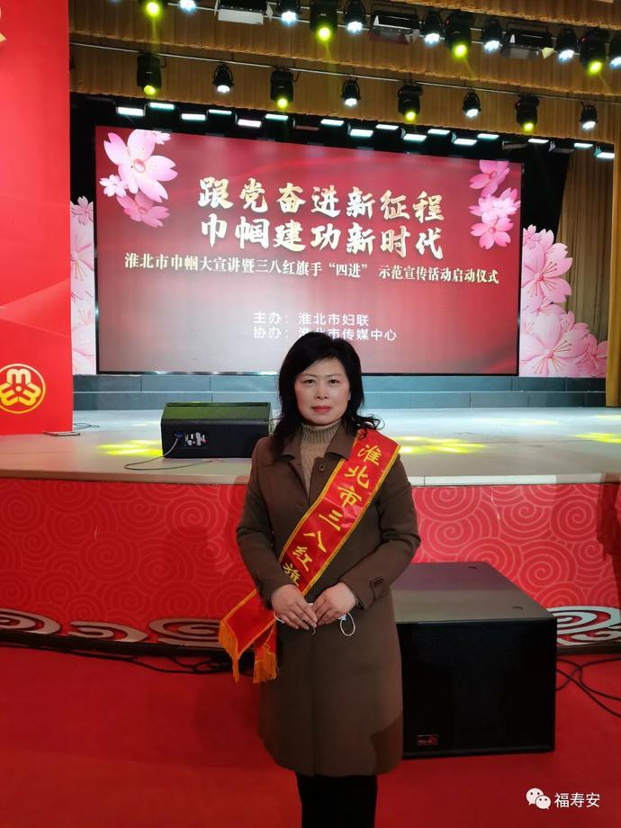 3月8日是第112个“三八国际妇女节”,在这个生机盎然的初春时节,在这个属于广大妇女的美丽节日,淮北市纪念“三八”国际妇女节112周年大会在市文化馆举行,濉溪县政协常委、“福寿安”品牌创始人、濉溪县城南福寿安制衣厂总经理郝梦磊被授予淮北市三八红旗手荣誉称号。