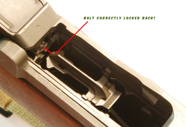 而加兰德也是可以通过托弹板顶住枪机的,但是这并不是正确的空仓挂机方式,这其实是挂机没到位。如果用托弹板顶住枪机,托弹板稍微动一下,枪机就立马释放了,然后夹手指这个情况就出现了。