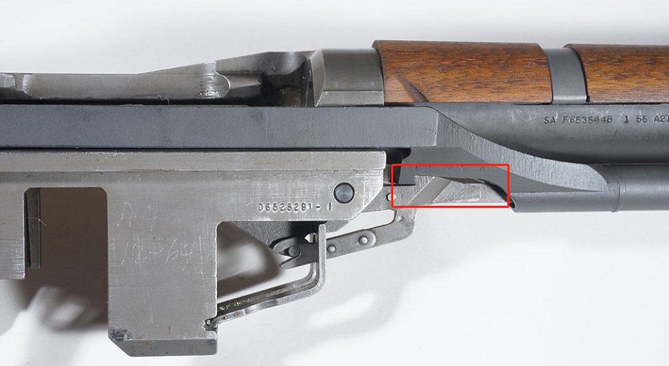 先说说加兰德步枪的空仓挂机是怎么挂住的,一般来讲,空仓挂机都是依靠托弹板托起,去撑起空仓挂机杆,顶住枪机。往往空仓挂机是在枪机前端挂机的,直接挂枪机。而加兰德不一样,加兰德挂的不是枪机,而是挂连接枪机的导杆。