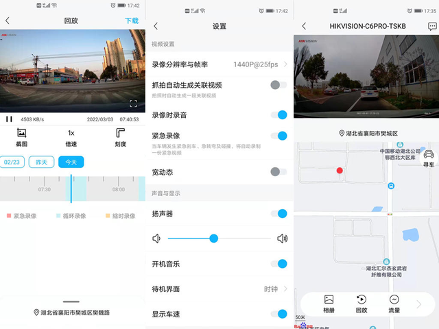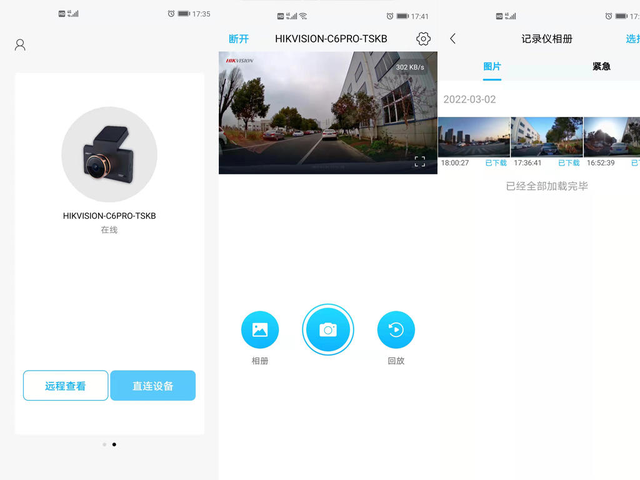 海康慧眼APP与70迈的APP大体功能上相近,支持远程查看和设备直连。不过在直连使用过程中有差别存在,比如在打开主界面的相册时,里面只包括图片和紧急两个类别,像录制好的非紧急视频只能通过回放进行查看。所以,在智能分类这一块,个人觉得70迈的APP要做的合理一些。
