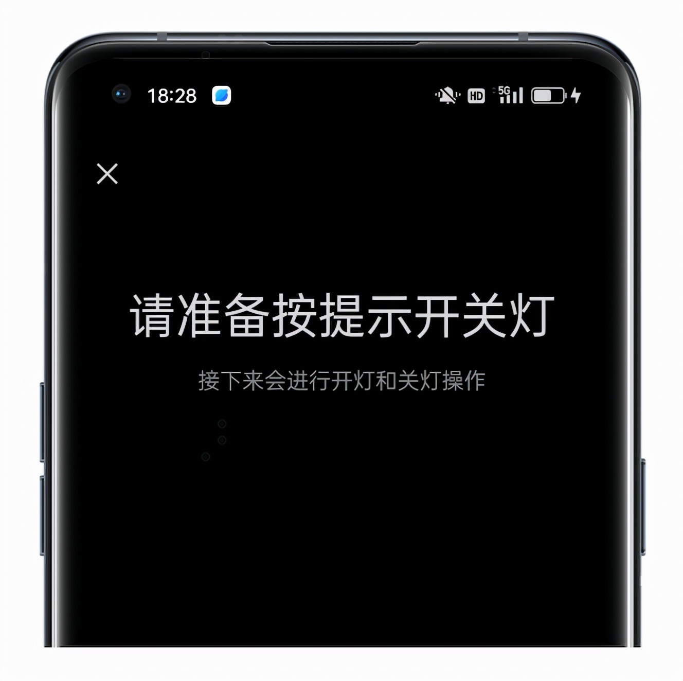 2)按照提示开关灯(操作过程中需要屏幕对着光源)