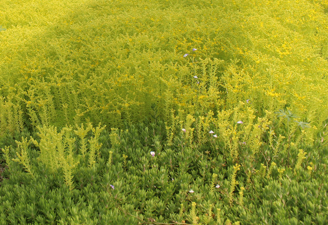 在庭院中,佛甲草可以用来替代草坪,用作铺地植物,肉肉的枝叶,嫩绿的颜色,淡黄的小花,种在庭院中非常养眼!