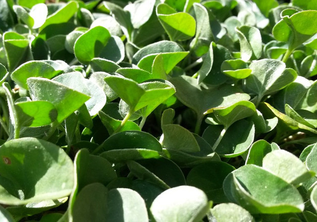 马蹄金,又叫金钱草或马蹄筋,叶片很小,圆圆的,常年翠绿,观赏价值高。
