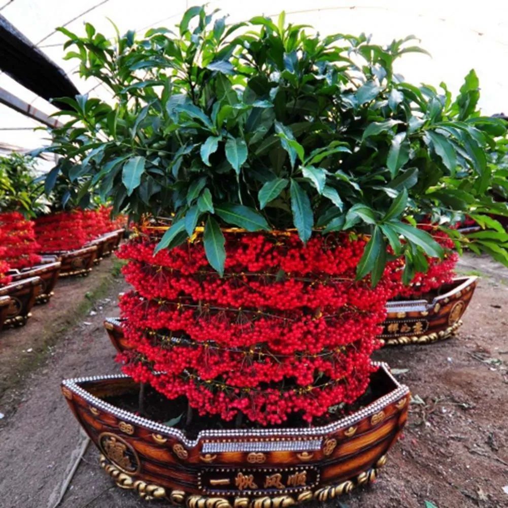 到了夏秋季节的时候,它就开始孕育花朵,这个时候就可以每隔一周给它补充一次磷酸二氢钾或花多多2号,浓度是1000倍,秋末就会开始孕育果实,它的小浆果刚开始是米白色的,等到了冬季就会慢慢变成红色,观赏性会越来越好。
