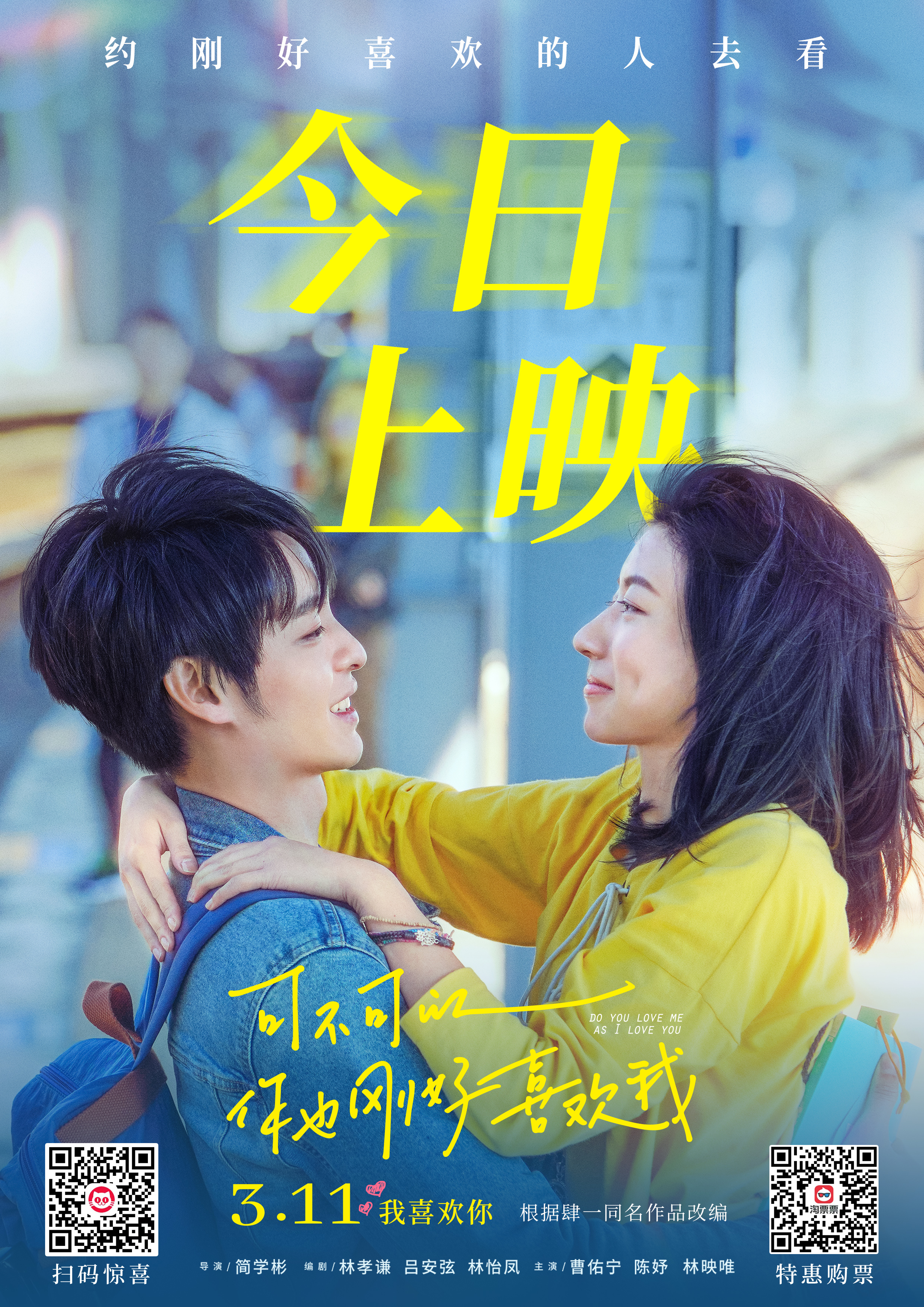 中国台湾青春爱情电影《可不可以你也刚好喜欢我》今日上映,影片三大亮点浪漫解锁,这个春天最温暖美好的心动之旅正式开启!本片由《比悲伤更悲伤的故事》创作团队再度联手打造,改编自畅销同名作品,新锐导演简学彬执导,邓紫棋献唱主题曲,曹佑宁、陈妤、林映唯主演。影片2020年在中国台湾地区上映后,取得了本土爱情片年度票房第二的佳绩。就在今天,快快买票,约刚好喜欢的那个TA走进影院,让这部电影成为你们无数浪漫经历中最难忘的一个回忆吧!