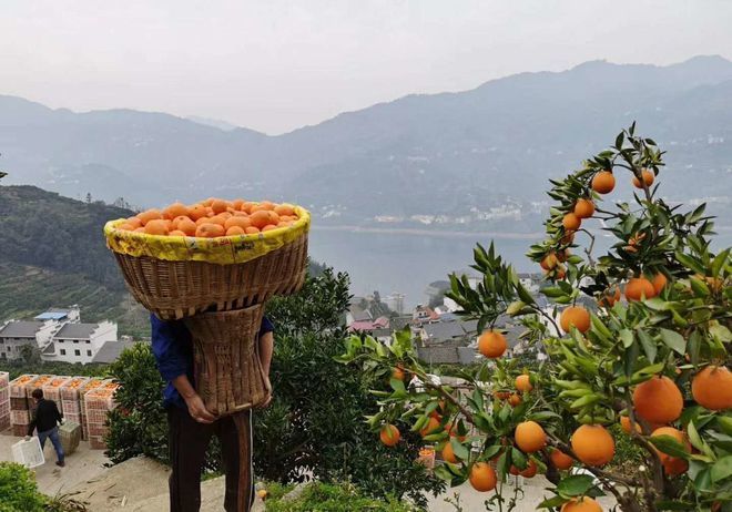 由于地形限制,秭归不像湖南、江西、浙江等脐橙种植大省,无法机械化耕种,也不能开货车到果园里直接拖货,种植全靠果农小规模种植,采摘全靠人力背背篓,走过山路再装车。所以经常可以在网上看到关于秭归脐橙的推荐里面,有农户一框框背着橙子的照片。