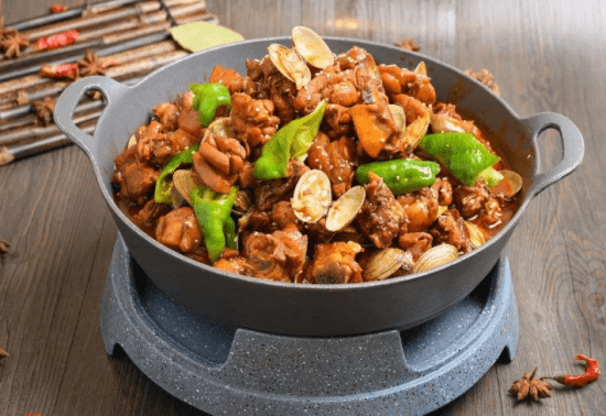 炒鸡、炖酸菜热锅、鹿筋折(拆)鸭子热锅、羊西尔占、苹果软烩、烧麅肉、醋烹豆芽菜、肉丝炒韭菜、象棋眼小馍首、火爆豆腐包子、甑尔糕、粳米乾膳、豆腐八仙汤、银碟小菜、银葵花盒小菜……