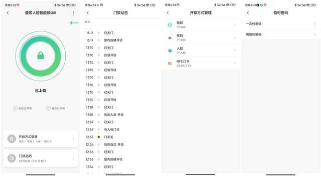 鹿客3D人脸智能锁S50F可以接入米家APP,通过蓝牙网关实现联网,可以设置指纹,密码,人脸,NFC等解锁功能,还能查看门锁的动态,知道谁回家了,门有无关好等提示。还提供了临时密码服务,方便家中无人,亲朋好友门口等的情况发生。