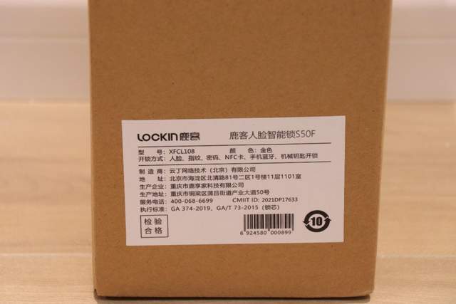 鹿客3D人脸智能锁S50F是鹿客2022年最新推出的智能锁,包装信息提示已接入米家,毕竟米家是国内用户最喜欢的智能生态之一,结合家中的其他智能产品,可玩性会非常多。中间是鹿客的大logo,侧面是产品的型号参数信息。
