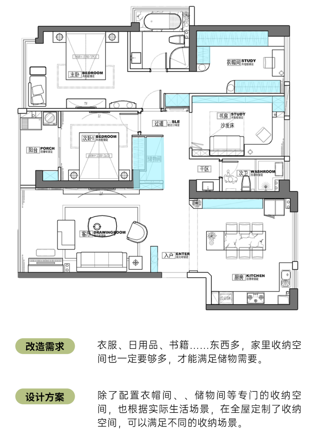 在将主卧打造为大套房后,主卧的门旁边,留出了一方空白。
