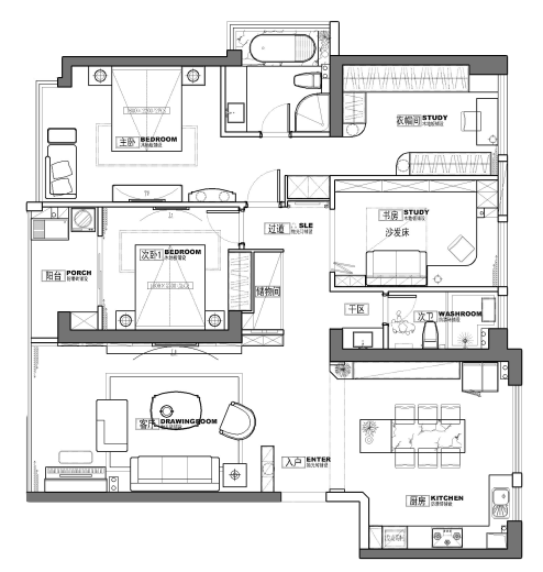 在这套案例里,大套房、拥有落地窗的客厅,开放式的餐厨空间……一切品质生活的答案,似乎都能够在这里找到,一家三口的需求,通过设计,也都得到了满足。