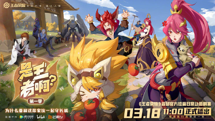 《是王者啊?》第一季剧集将于 3 月 18 日 11:00 在腾讯视频、bilibili 以及芒果 TV 首播,每周五 11:00 更新一集。