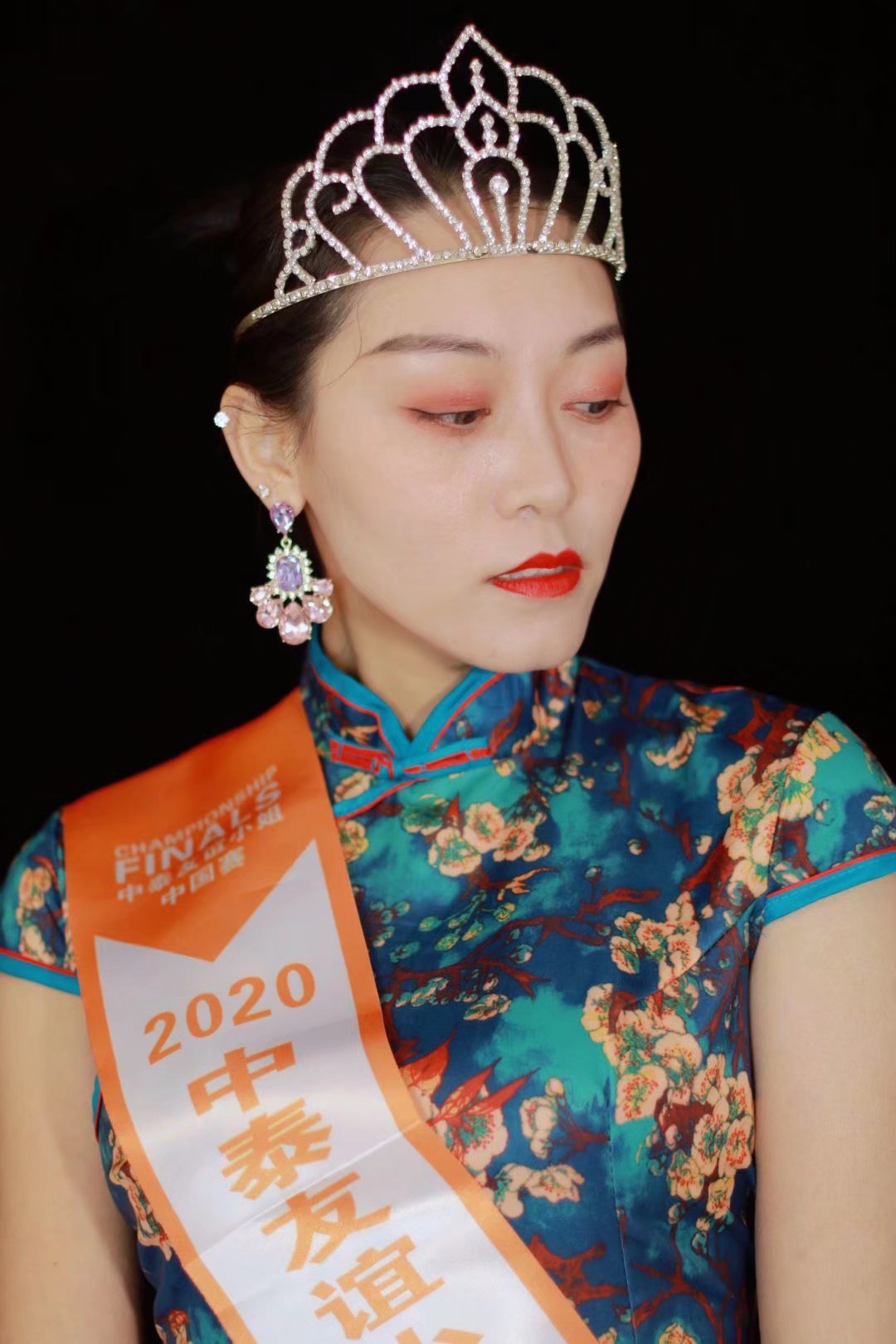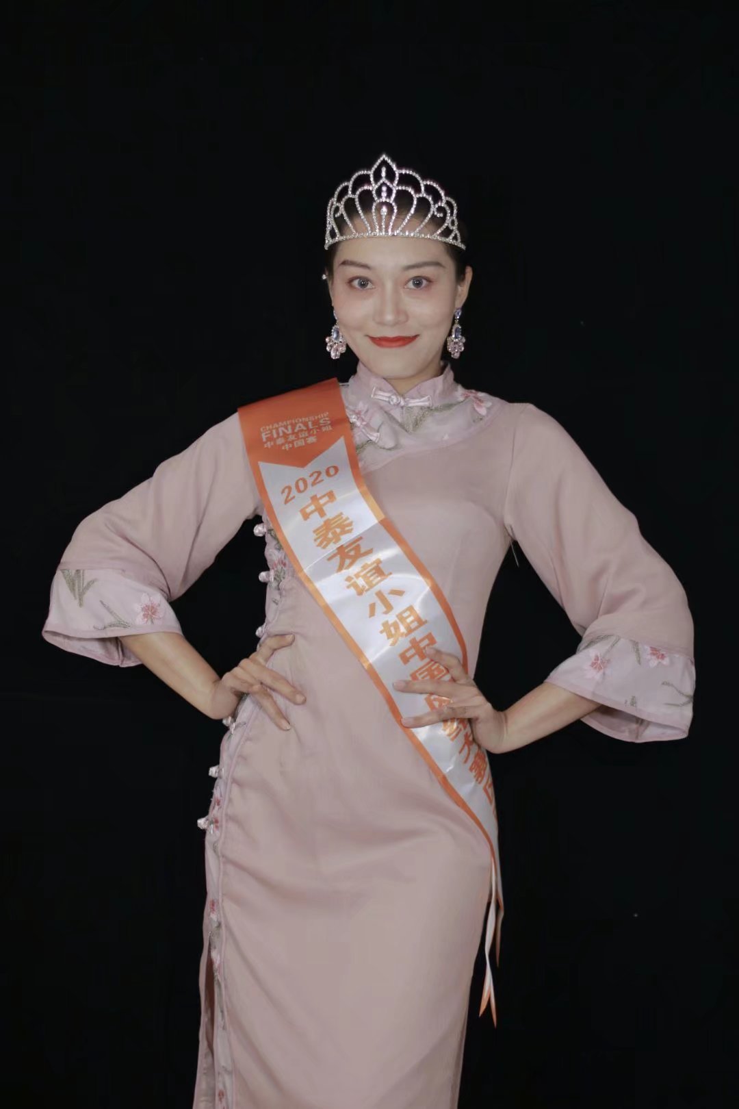 娇俏的体态,精致的小脸蛋,笑容甜美沁心,满满皆是纯真。朱唇半启、拢肩躲在旗袍里,美哉美哉,惹人怜爱,佳人艳若桃花的颜,美不胜收。