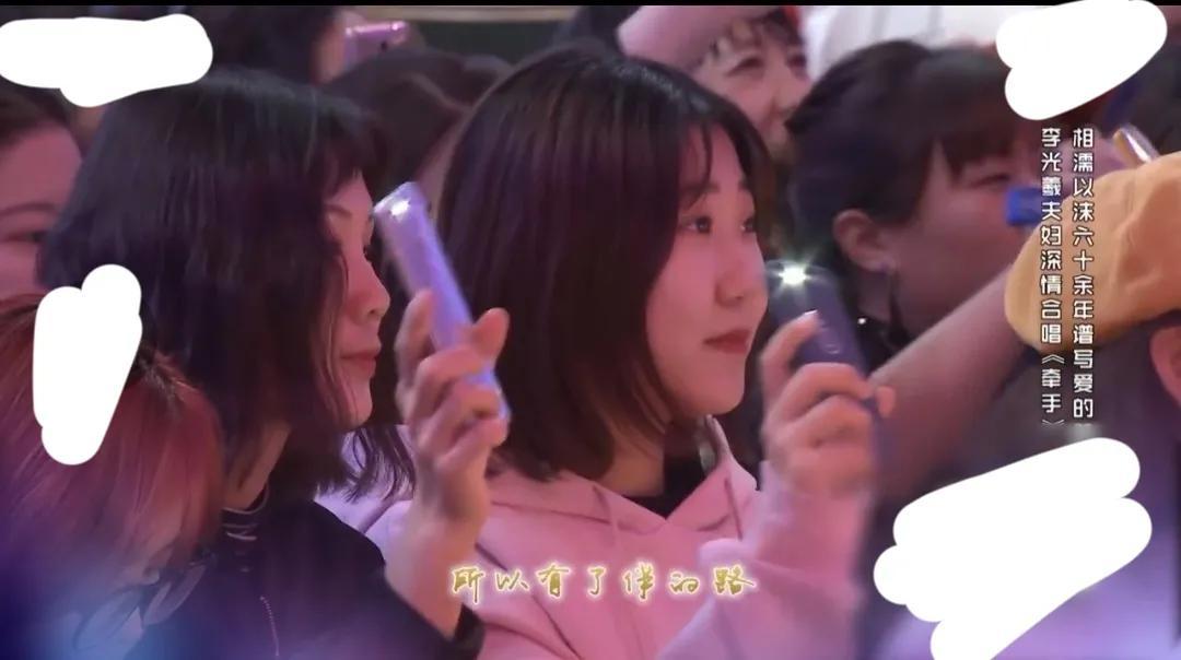 镜头扫到台下观众的时候,不少年轻人举着手机,打开光亮,用年轻人特有的追明星、偶像的方式,为他们应援。而仔细看,个别年轻人的眼睛里面,已经满含泪水,大家都为李光羲、王紫薇夫妇俩的伉俪情深而感动着。