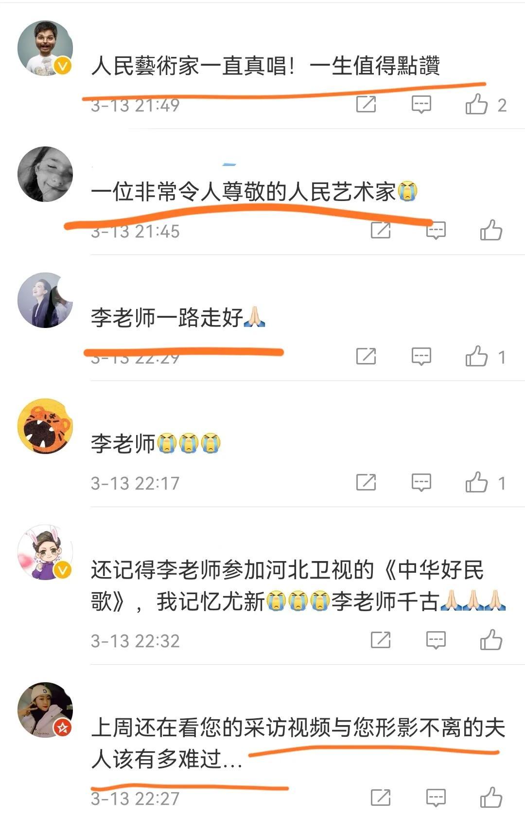 听闻他离世的消息后,不少网友感到万分悲痛,中国的歌唱界又损失了一位真正的艺术大家。