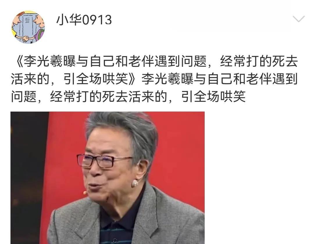 有网友在得知李光曦离世的消息后,在媒体报道的社交账号下面留言表示,李光曦突然撒手人寰,他爱人王紫薇该多么难过啊!平时老两口好得像一个人似的,这回,突然老伴没了,最悲痛的莫过于是他的另一半儿了。