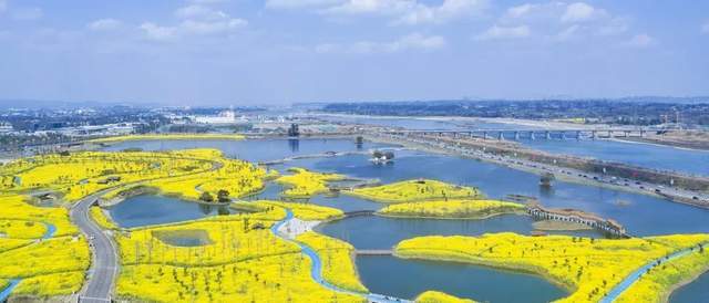 不用担心,这个唯美的新晋网红打卡点推荐给你——江山里·悦湖旁约3500亩的五湖四海湿地公园。阳光下的五湖四海宛若一颗蓝宝石,美得不可方物,更坐拥上千亩油菜花海,金黄色花朵竞相绽放,在风中摇曳生姿,展示着浓浓的春意和旺盛的生命力。