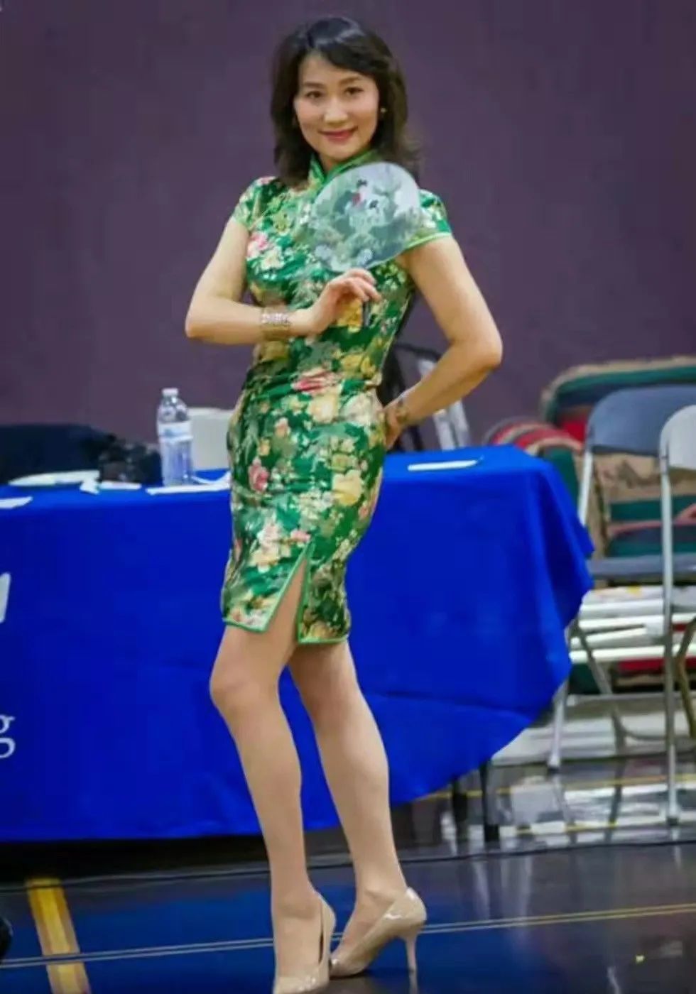 王苓华毕业于上海歌剧舞剧院,80年代移民加拿大,从事舞蹈教育,她的容貌、身材、气质样样绝佳。多年后她穿一身旗袍,手持团扇在台上献舞,风韵犹存。