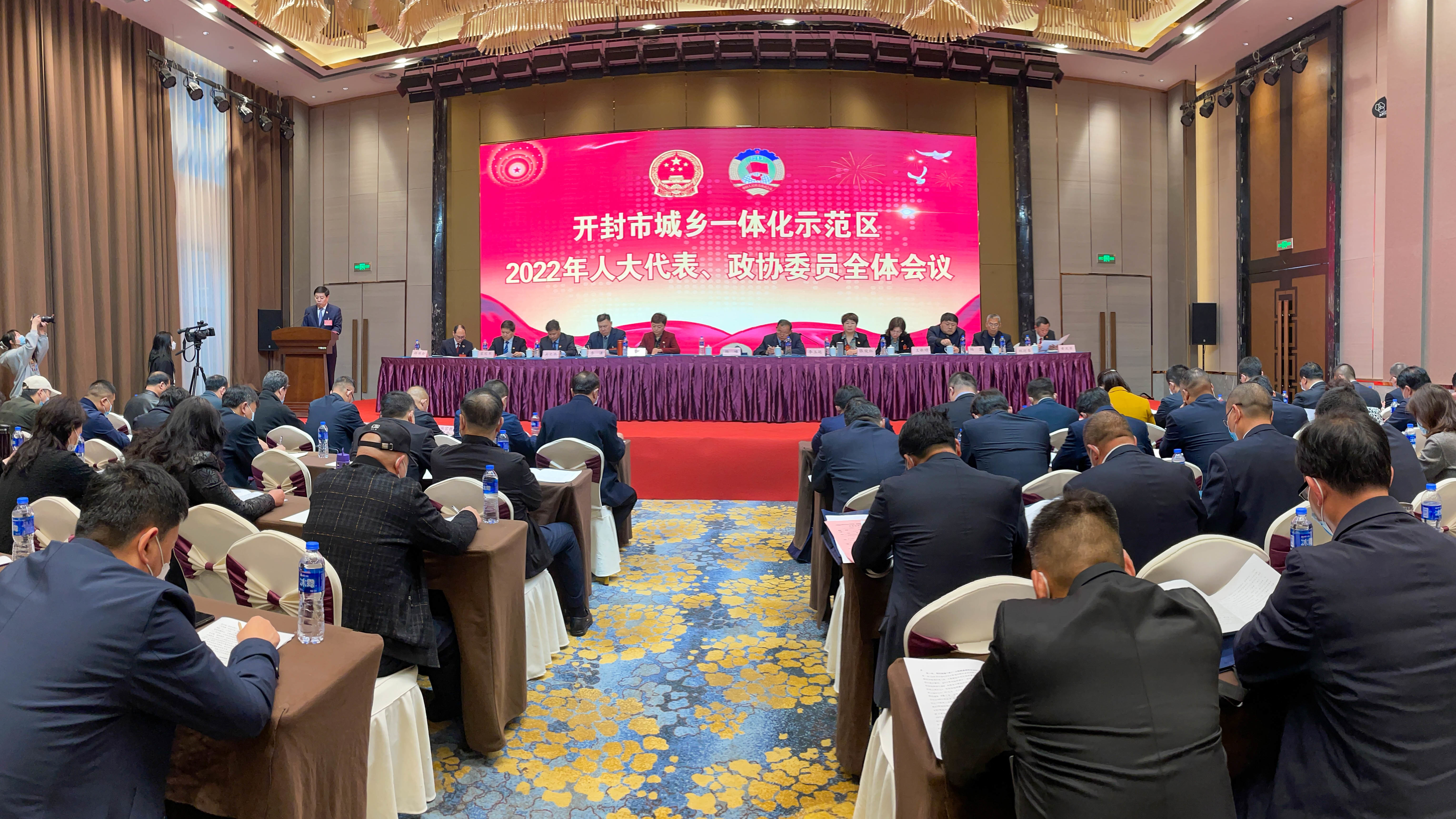 3月13日,开封市城乡一体化示范区2022年人大代表、政协委员全体会议在中州华悦酒店三楼华悦厅召开。来自示范区各条战线的人大代表、政协委员及各界人士齐聚一堂,共商示范区发展大计。