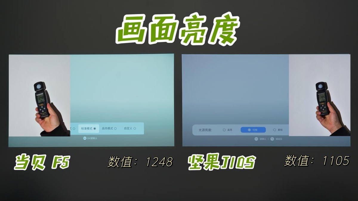 ①在画面亮度上,当贝F5的亮度数值更高。