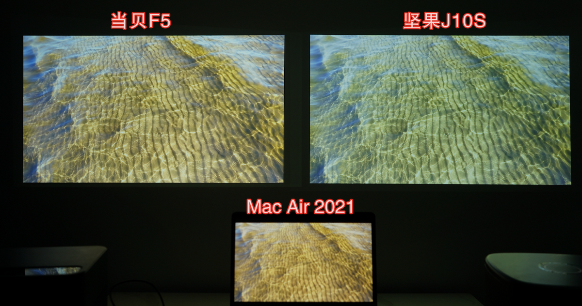 从整体来看,你会发现当贝F5的画面展示会更为真实,画面的对比度要高于坚果J10S,河底的明暗褶皱也更加清晰。