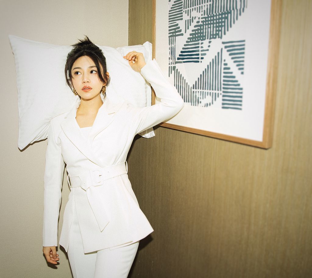 陈妍希穿白西装干练有型 盘发造型优雅显气场