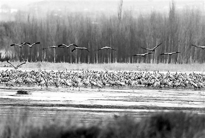 和往年不同,今年春天返回的鸟儿身体比较壮实,看起来在路途中食物比以前丰富。“今年数量比往年多的是灰鹤,现在这里已经有4000只左右。”李理说,灰鹤是国家二级保护动物,这些鸟儿往往是以家庭为单位,成群结伴飞回。“到官厅水库之后,由于鸟儿太多,家庭之间无法保持队形,所以一下子就混在一起了。”