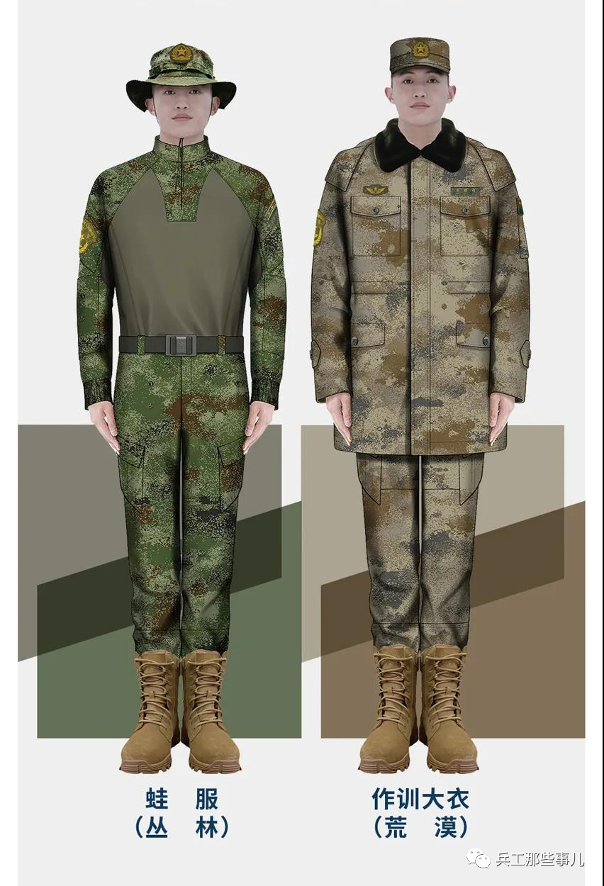 此次换装的21式作训服主要包括迷彩作训服、特勤作训服和作战靴,用于作战、训练、战备、执勤、遂行非战争军事行动任务时穿着。其采用了夹克设计以及斜插兜设计,在外型上极为接近冲锋衣。在迷彩方面,设计虽然仍以07系列的色调为基础,但优化了颜色、花型,增加了噪点、过渡颜色。