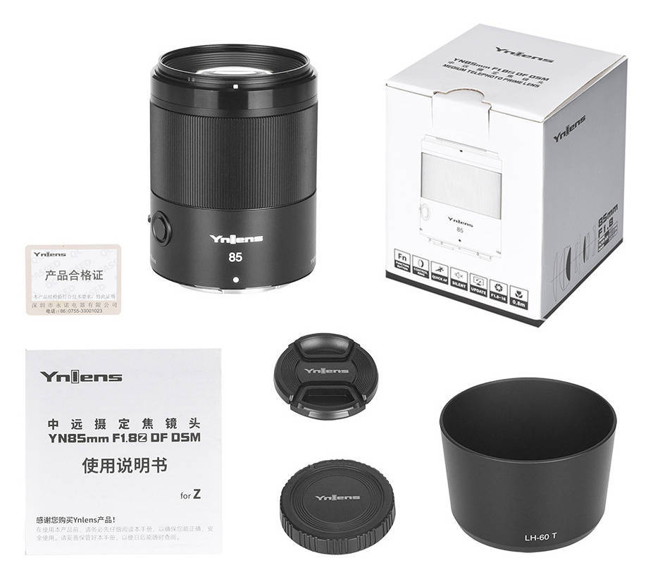 永诺YN 85mm f/1.8Z DF DSM是一支针对无反相机设计的自动对焦镜头,由9片8组镜片组成,所有镜片均为玻璃镜片,其中一片是低色散镜片、一片是高折射率镜片,并且使用了纳米多层镀膜,以抑制鬼影、眩光;内部采用7片光圈叶片,能够营造14星芒效果;搭载了DSM步进马达,最近对焦距离为0.8米,镜筒带有AF/MF开关以及控制环,后者不但可以用于对焦,也能用于控制光圈、ISO、曝光补偿,与原厂镜头上的自定义控制环功能一致;在镜头侧面带有一个USB Type-C接口,用于升级镜头固件之用,卡口位置配有橡胶圈,实现了防尘防水滴效果;镜头直径为68mm,长89mm,重405g,定价2199元。