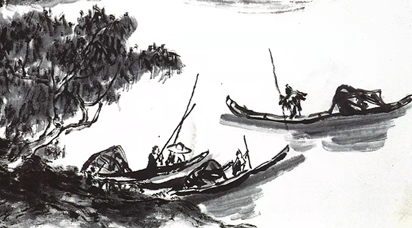 在人物处理方面,国画《斜江摇渡》与小说《边城》也颇有异曲同工之妙:两者都是把鲜活的人物形象置身于山水之间,营造出风土人情与自然和谐共处的格调,并在优美秀丽的景色中体显出人物清纯脱俗的自然属性。