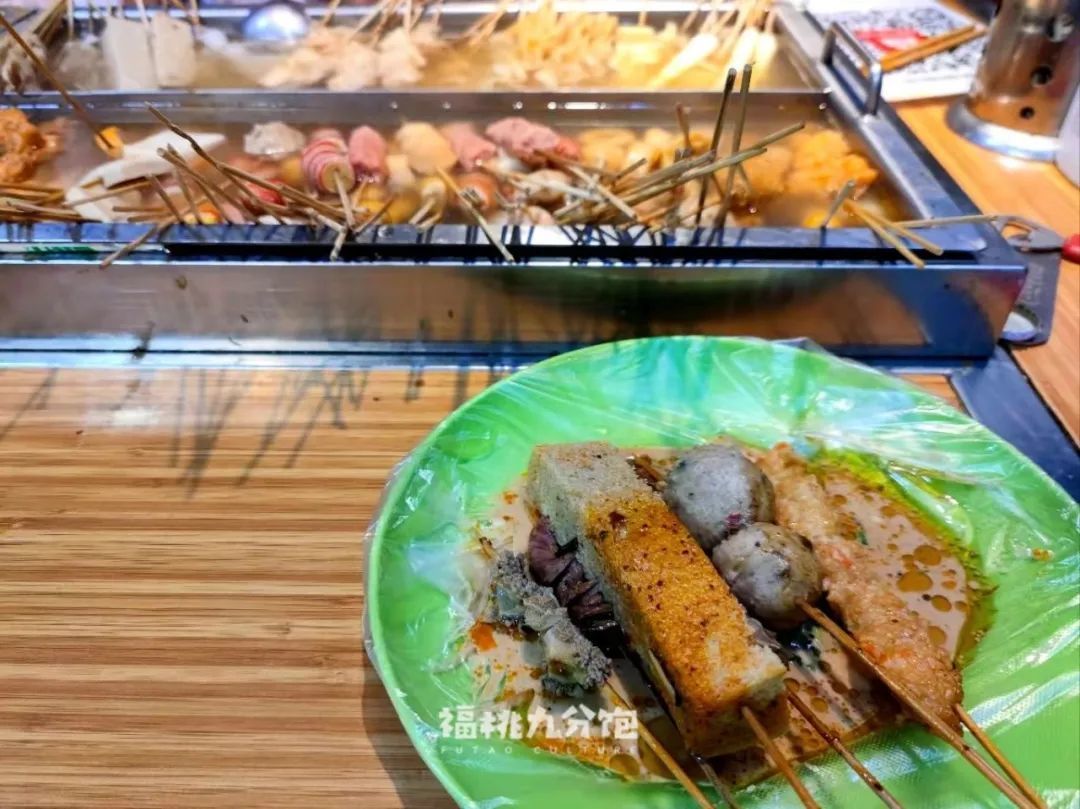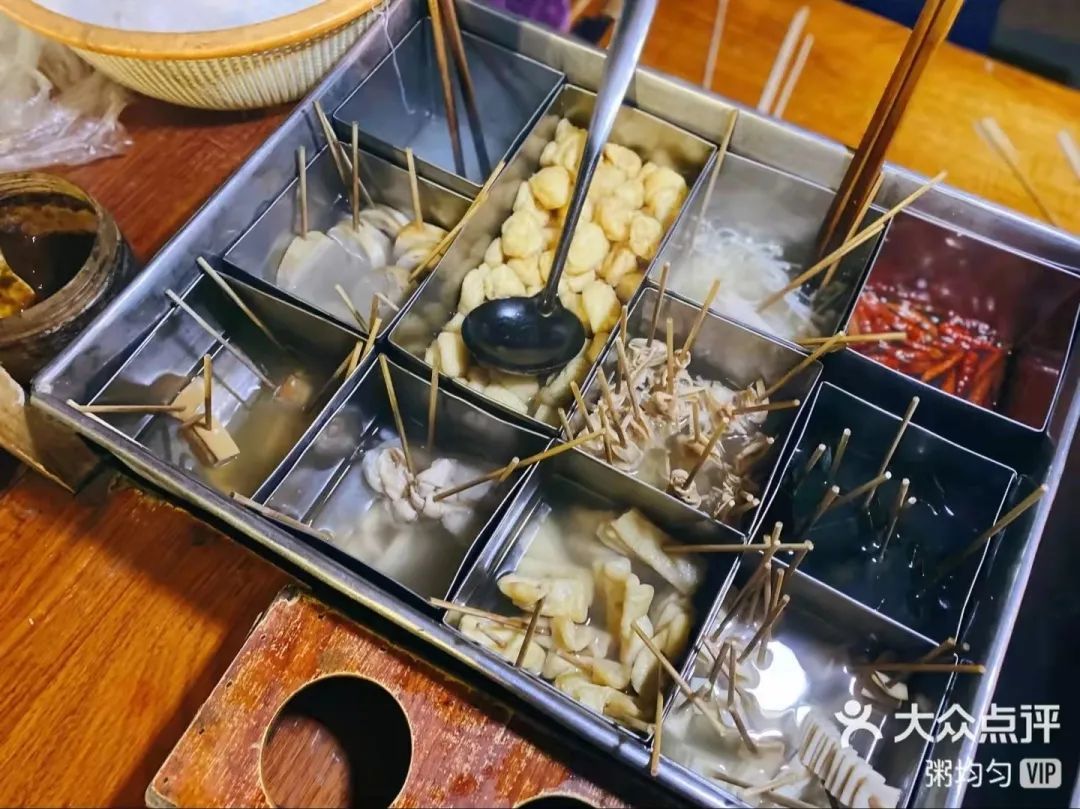 譬如在饱妹的半个故乡,浙江台州临海就有一种汤串,像关东煮一样有不同的格子煮着不同的食物,爱吃什么就叫老板装到塑料杯里,台面上还会放个小料盒,装着豆瓣酱、辣椒酱和葱花香菜,中间有个大格子煮着豆泡,1块钱能装满满一大勺,旁边还会有个盆放泡好的粉丝,吃的话会现下锅煮。