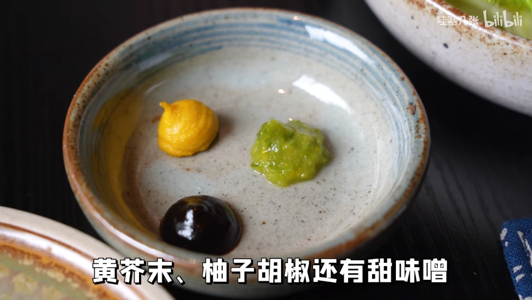 最后就是蘸料,我也是很久之后才知道,日本的关东煮是有蘸料的。因为最早来自于味噌田乐,所以关东煮的搭配蘸料也有味噌,除此之外还有柚子胡椒和黄芥末。