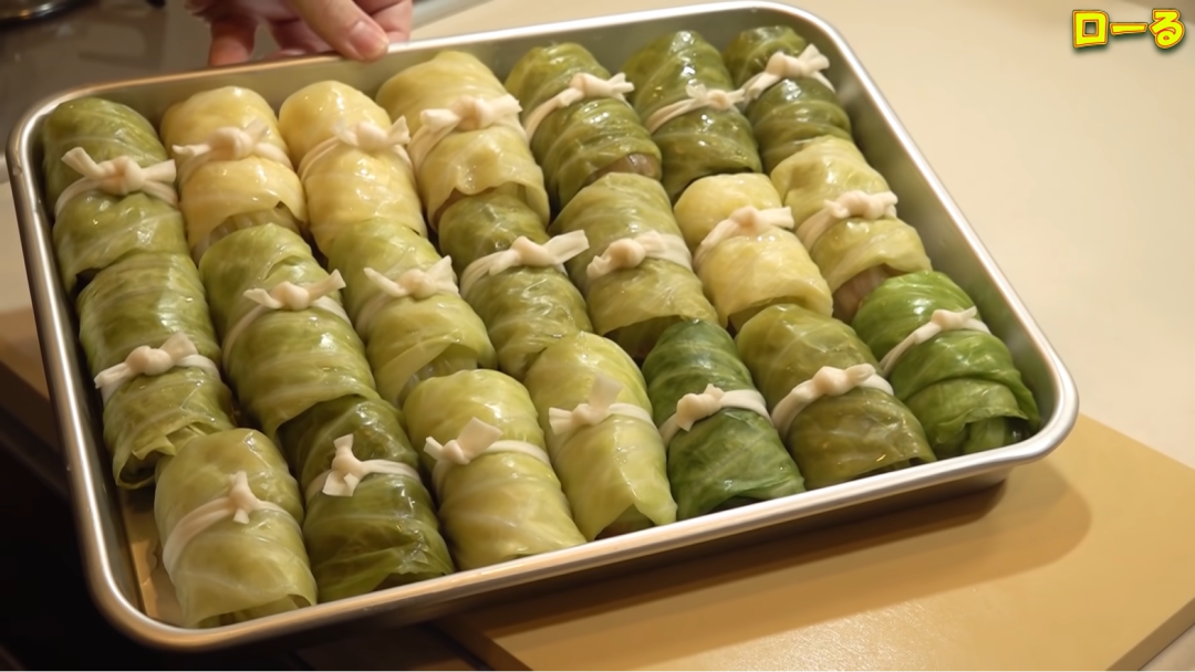 圆白菜肉卷要自己调好肉馅一个个包起来;
