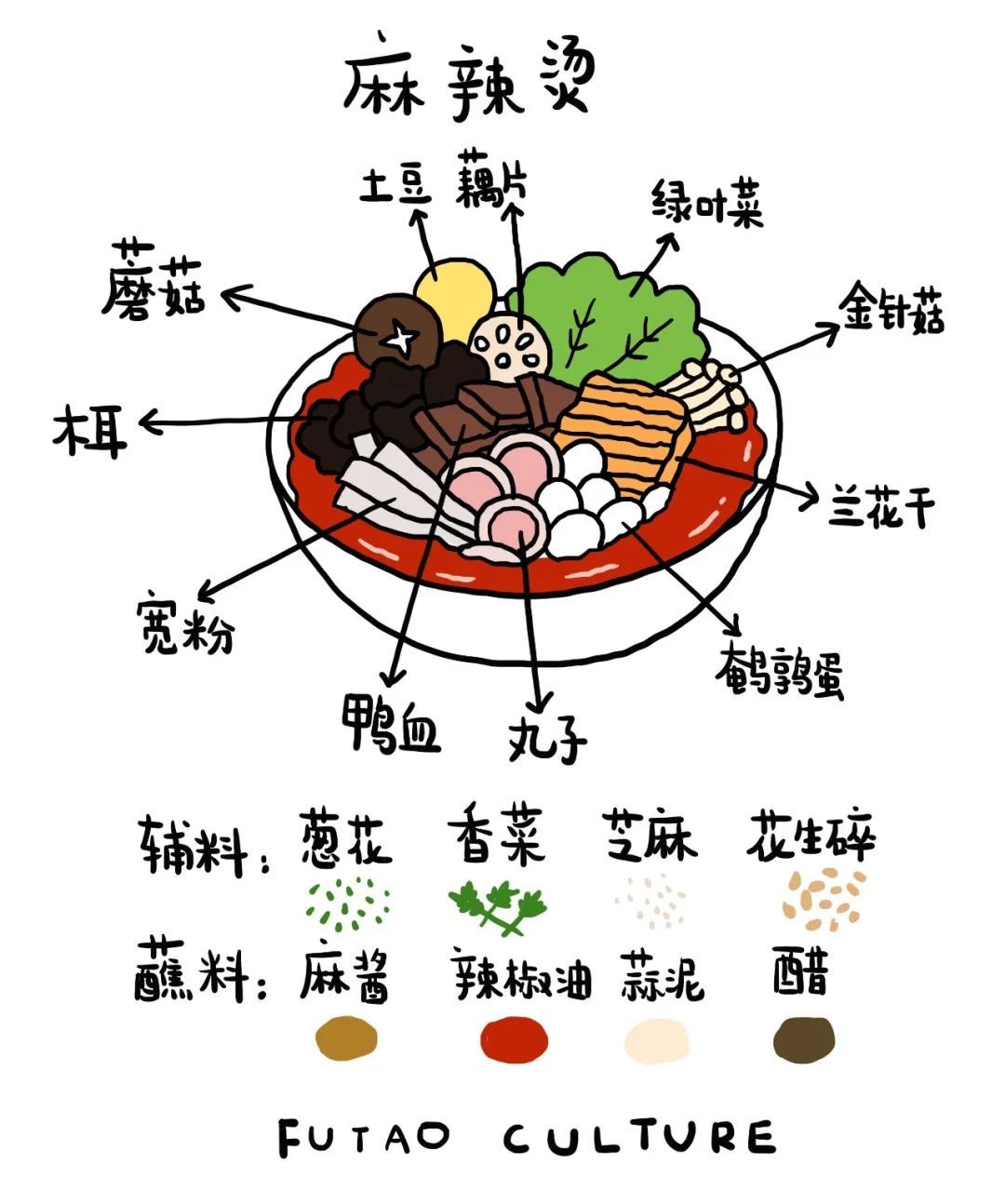 但关东煮也不需要成为麻辣烫,麻辣烫也不需要成为关东煮,相反,兰花干、油豆皮、红丸子、宽粉、土豆片、鸭血这些食材也是因为我们吃的是麻辣烫才变得如此美味。