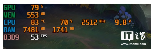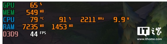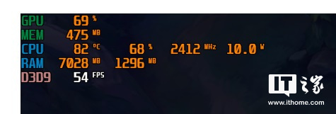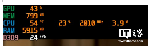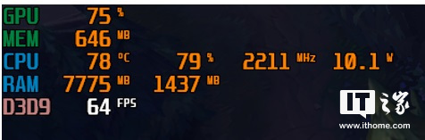 ▼ 弹幕全开情况下,GPU 占用达到 80%,而此时的功耗也达到了 10w,大概是 HDR 自动激发最大亮度的原因。拔掉电源,各项数据相差无几。