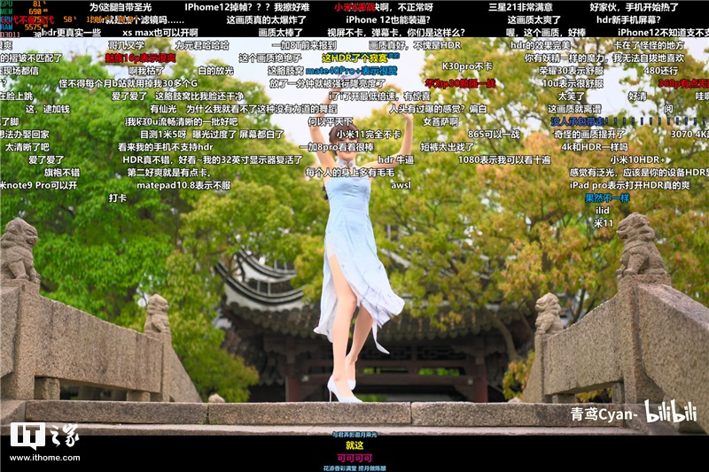 B 站 4KHDR 视频播放测试时出现了意想不到的问题:开启弹幕,则检测软件只能检测到 30fps,而视频无掉帧;但是弹幕帧率被限制在 30fps。若关闭弹幕,左上角的检测组件也会一同消失。因此这里的帧率看看就好。