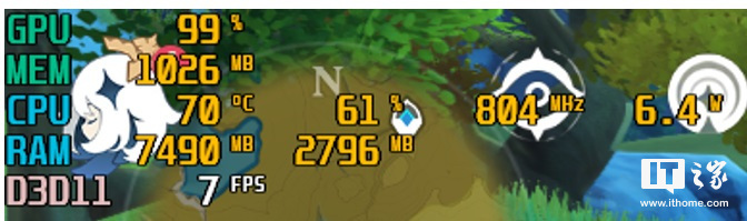 ▼ 中画质下,帧率并没有明显降低,维持在 7 FPS 左右(也可能是没有多少下降空间了):