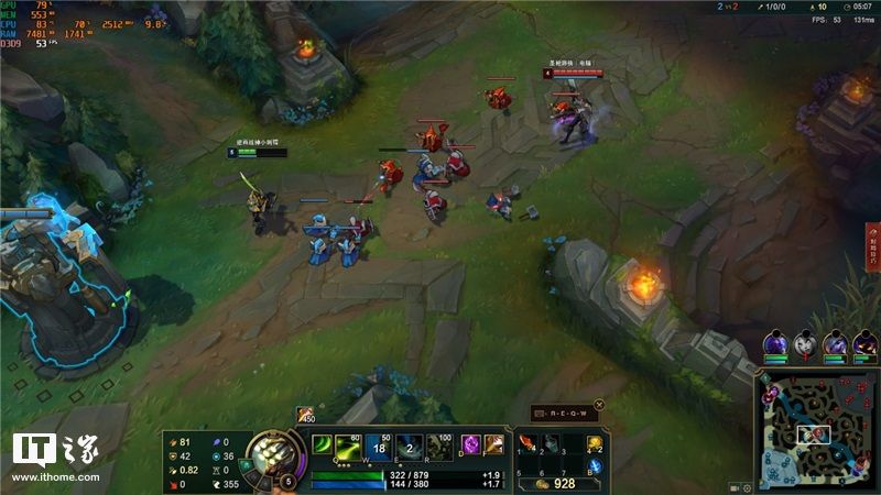 如果要用 Surface Go 3 打 LOL,建议直接最高画质。经过整局综合评测,打团时的帧率大概为 30 - 45 FPS,对于一个没有主动散热的平板来说已经难能可贵了。