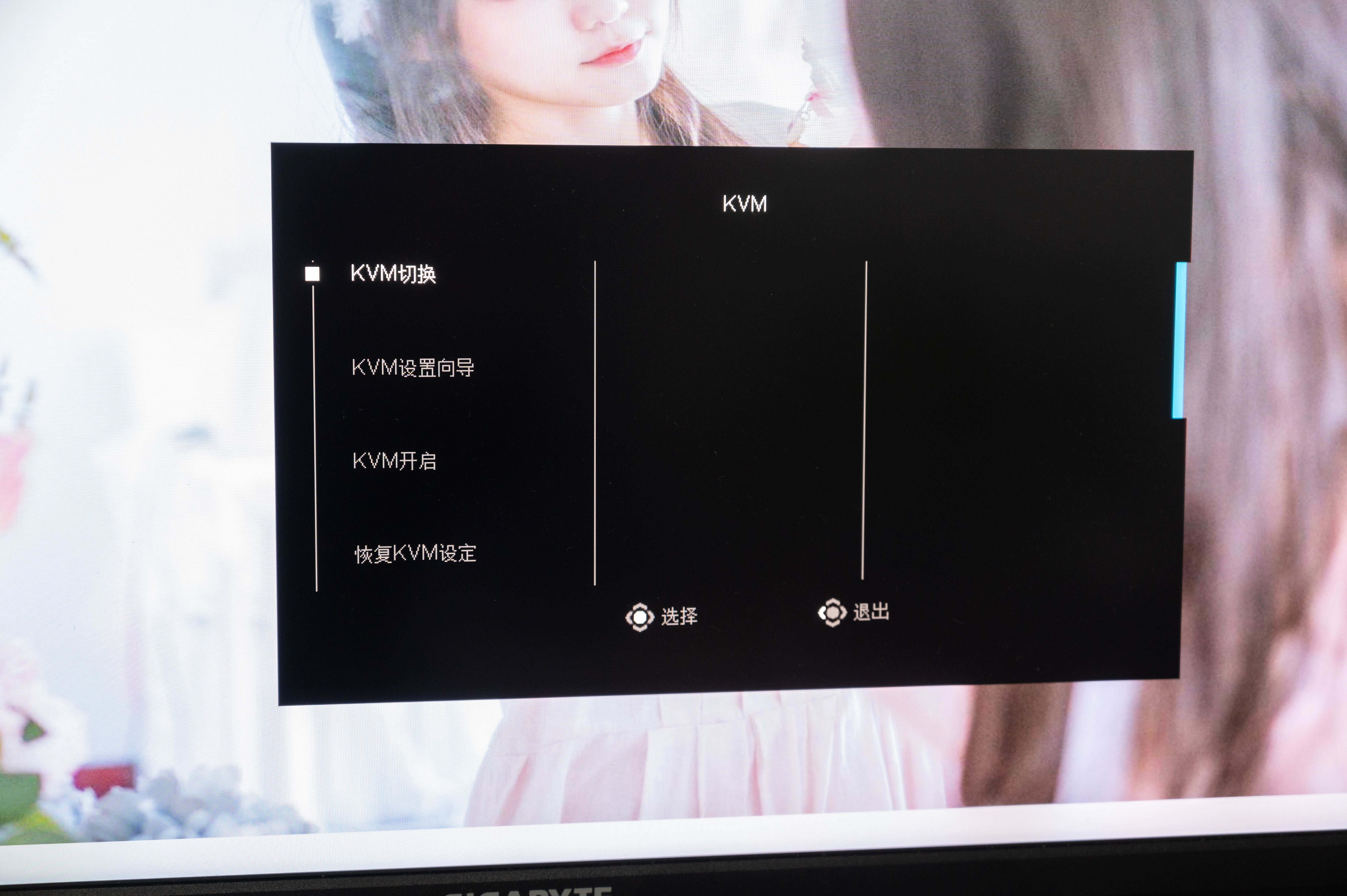 ▼除了使用KVM独立的一键切换外,通过技嘉M32U电竞显示器的5维导航键也可以进行多设备切换,而且选单中还包括针对游戏场景非常实用的OSD功能。(后面会详细介绍)