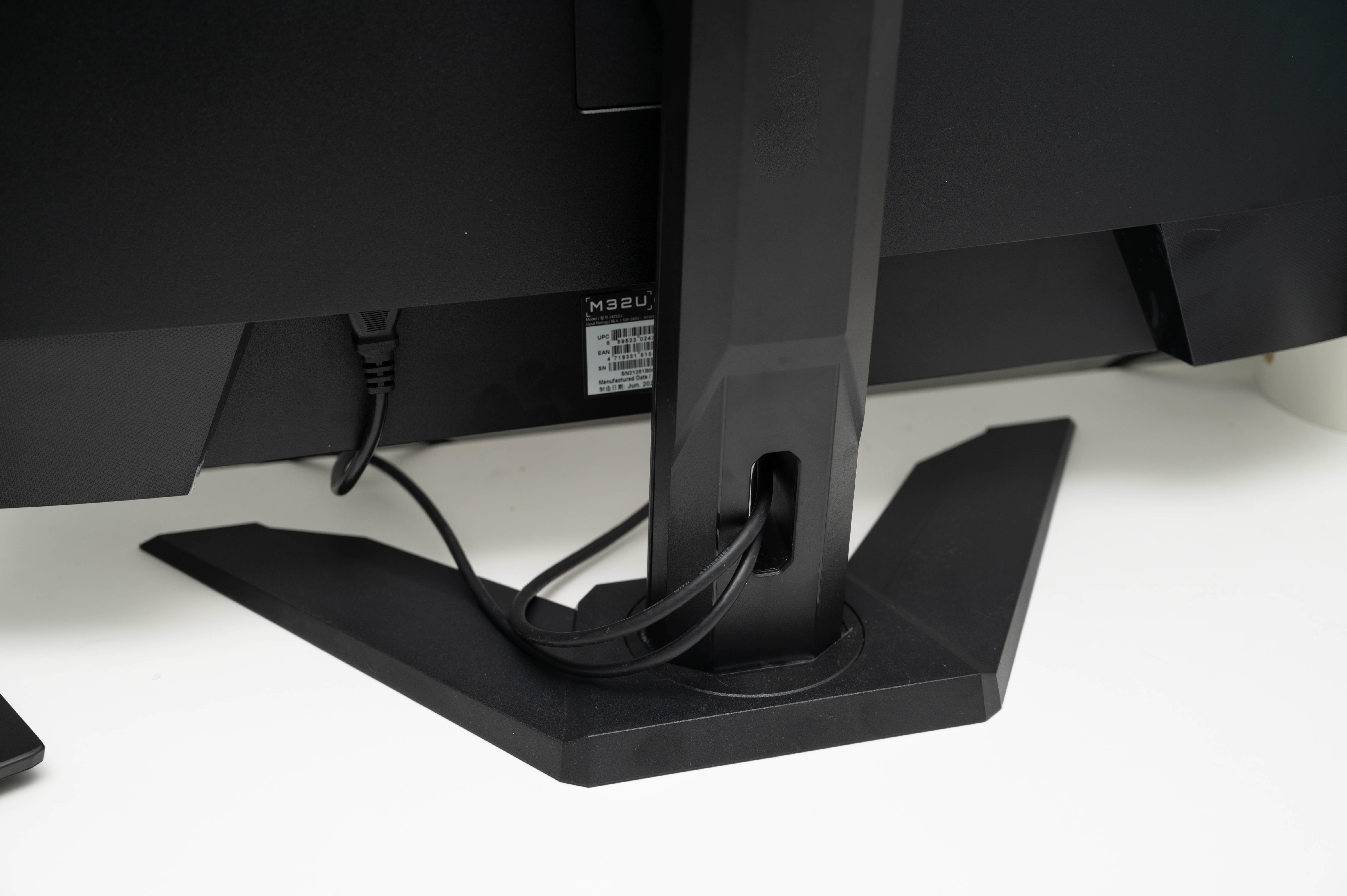 ▼在技嘉M32U电竞显示器的显示器支架中间还贴心设计了理线槽,可以保证桌面的整洁。