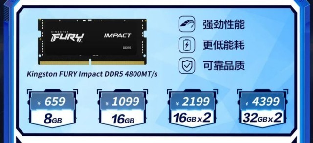 本月初,金士顿在海外正式发布了FURY Impact 笔记本 DDR5-4800内存,相比DDR4内存,这一系列DDR5内存的速度提升达50%,另外,其还通过了英特尔 XMP 3.0认证,凭借 Plug N Play 超频技术和创新性的on-die ECC设计,可以自动实现4800MT/s的速度。另外,这一系列的内存将DDR5的强大性能集成在紧凑小巧的外形当中,单条容量最高可达 32GB,双条套装容量最高可达64GB。而且,1.1V的电压兼顾了低功耗和高能效。
