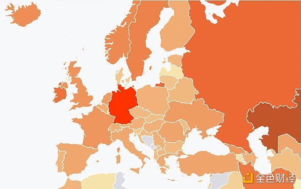 根据剑桥大学矿业地图公布的数据,欧盟约占比特币网络全球哈希算力的 12-14%,其中德国和爱尔兰贡献了大部分。