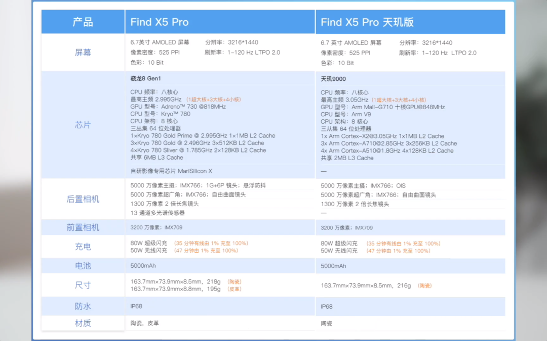 除马里亚纳 X 外,天玑版本使用光学防抖替代了悬浮防抖,这是两个主要区别。其他的部分,例如自由曲面超广角、前置 IMX709、5000 毫安时大电池、80W 闪充、IP68 等配置都是一样的。配置列表都在这里