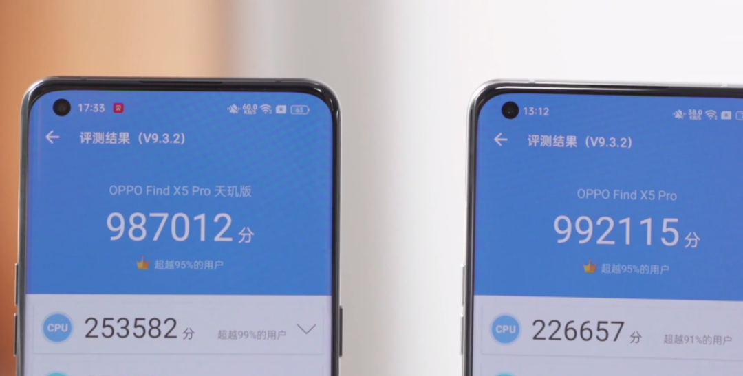 OPPO Find X5 Pro 天玑版安兔兔最新版跑分为 987012 分,相比骁龙 8 版本的 992115 分相差一点,但也非常接近了。