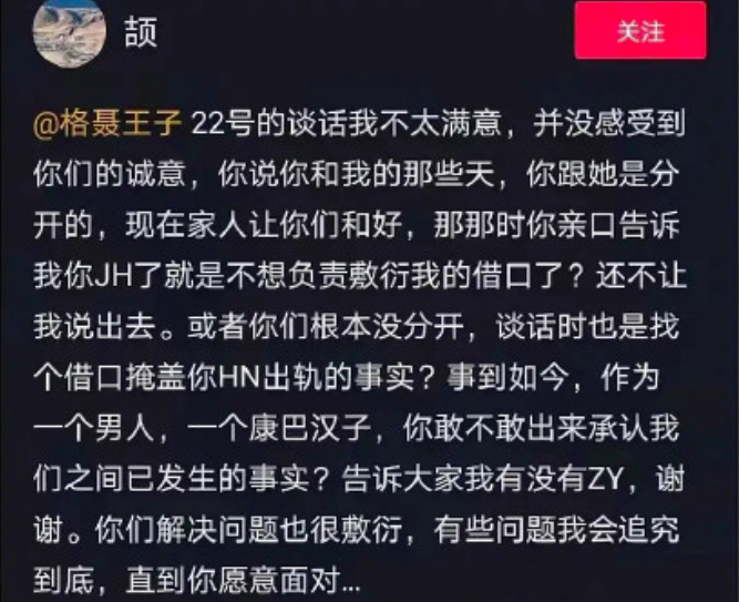 许多私生粉为了接触丁真本人,就先去找他的舅舅、村民。理塘县才红了两年,就因为丁真舅舅睡粉事件爆上热搜。在某社交平台,一位网友喊话丁真舅舅,自曝俩人曾发生关系,后来才知道丁真舅舅已经结婚了,就是所谓的婚内出轨。