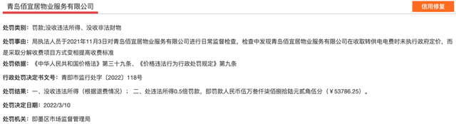 2022年3月10日,据信用中国网公示,即墨区市场监督管理局执法人员于2021年11月3日对青岛佰宜居物业服务有限公司进行日常监督检查,检查中发现青岛佰宜居物业服务有限公司在收取转供电电费时未执行政府定价,而是采取分解收费项目方式变相提高收费标准。