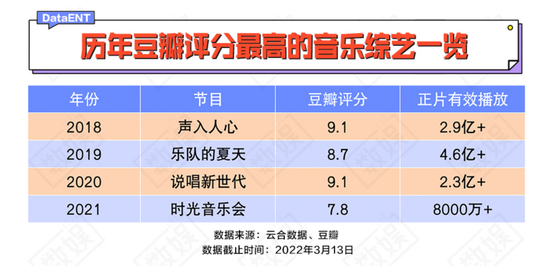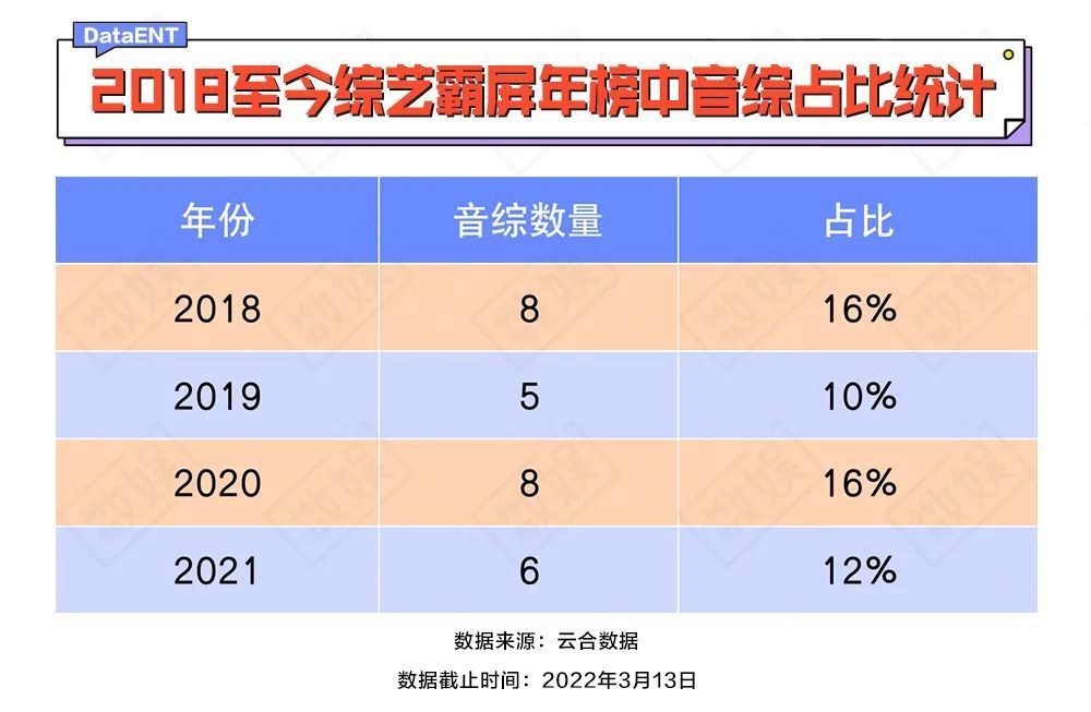 音乐题材在综艺领域的地位毋庸置疑,市场上每年都会涌现一大批音乐综艺。