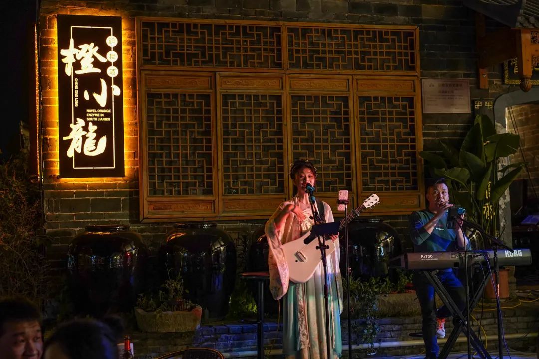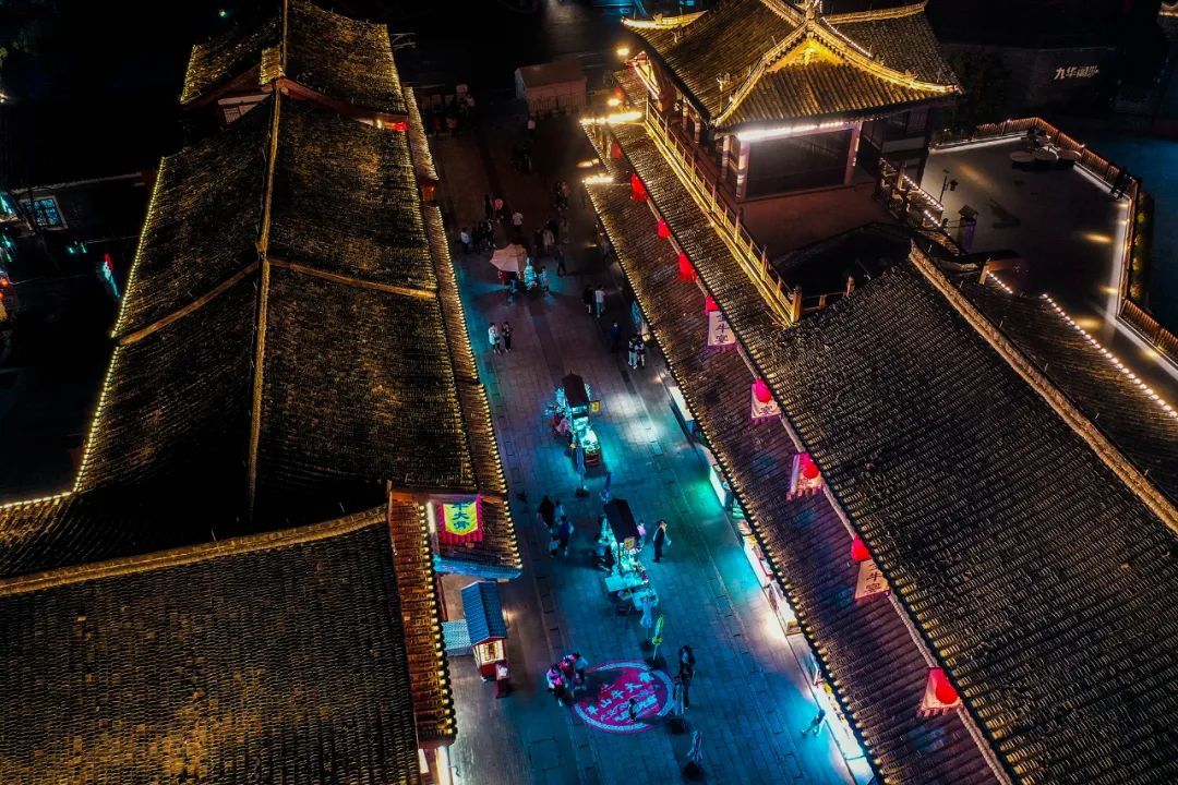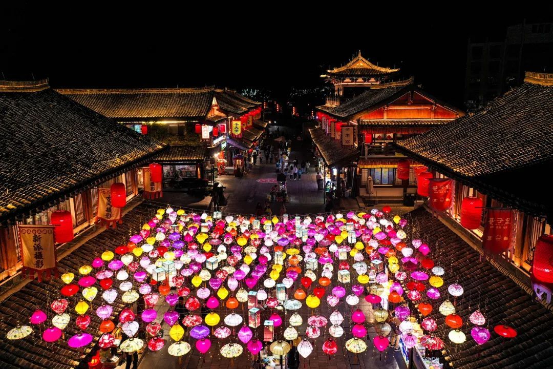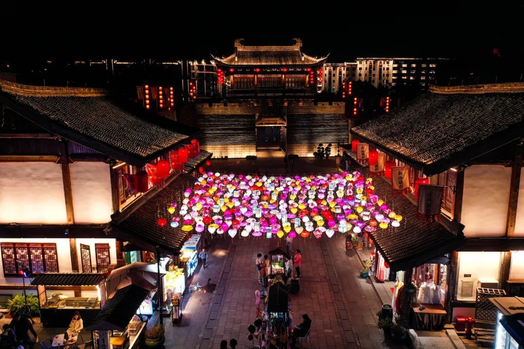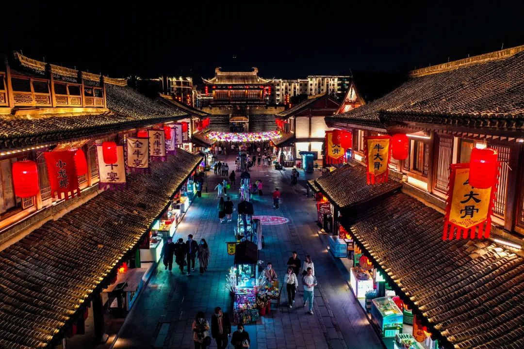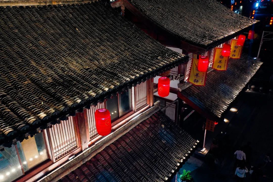 街道两旁点缀着一串串红灯笼,宋式舷窗,斗拱翘檐,令人的思绪总能飘浮到宋朝。