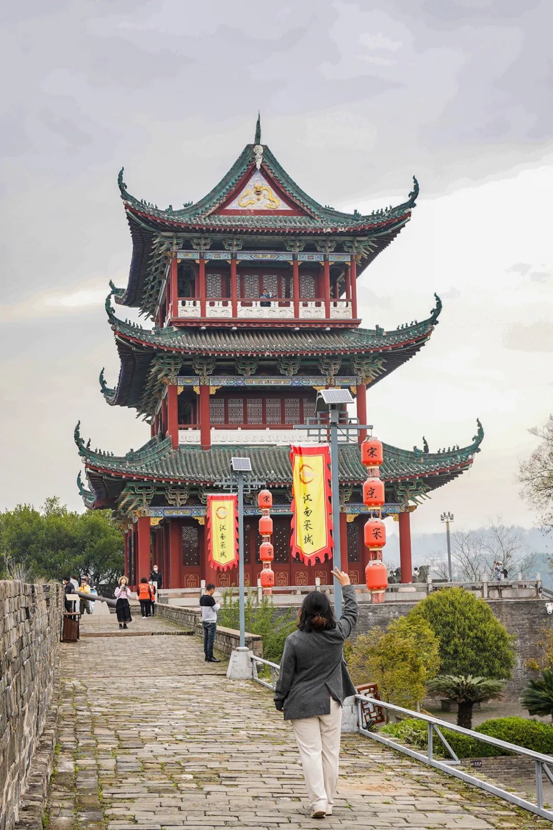 至于古城墙,现在的江南宋城大约有 3600 余米左右的古城墙,保留有大约 4 座城门。 墙体上至今还有北宋至民国时期以万计的铭文城砖。
